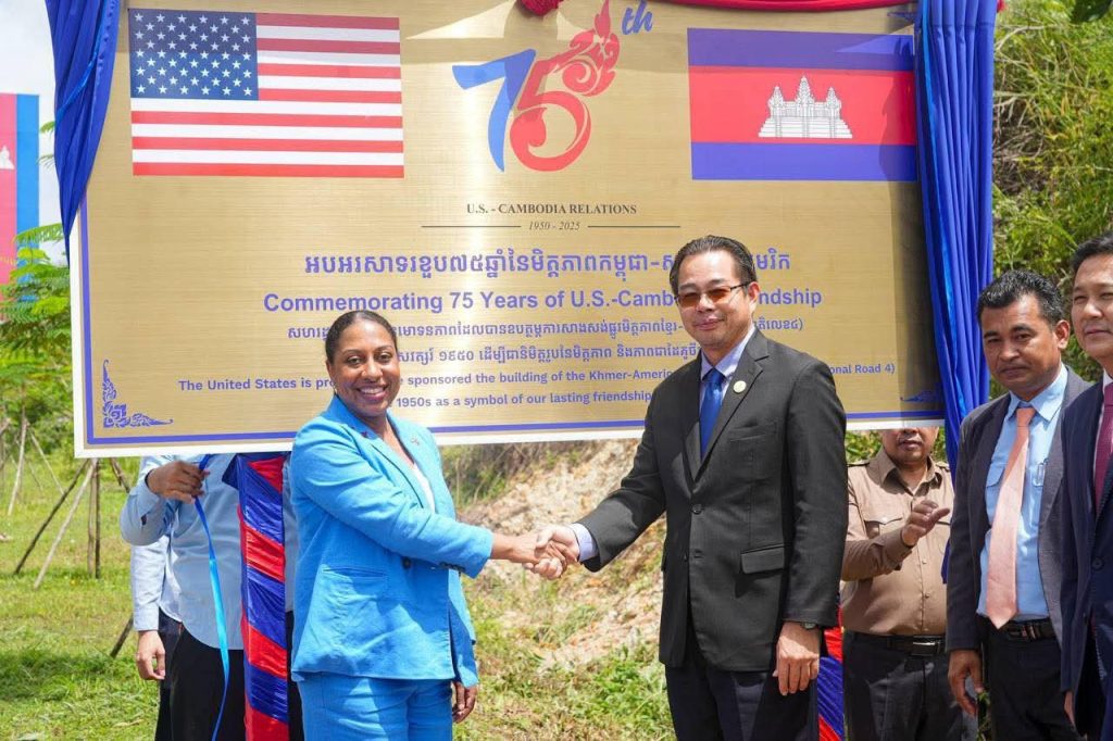 លោកជំទាវ Bridgette L Walker ភារ:ធារី នៃស្ថានទូតសហរដ្ឋអាមេរិកប្រចាំព្រះរាជាណាចក្រកម្ពុជា បានថ្លែងអំណគុណឯកឧត្តម អភិបាលខេត្ត និងសតហការី ចំពោះបញ្ហាជម្លោះព្រំដែនកម្ពុជា ថៃ សេចក្តីថ្លែង និងការតាំងចិត្តរបស់លោកប្រធានាធិបតី Donald J Trump ជួយឪ្យមានសន្តិភាពយូរអង្វែង និងការគាំទ្រតាមការបេជ្ញាចិត្តនៃកិច្ចព្រមព្រៀងបទឈប់បាញ់ថ្ងៃទី២៨ ខែកក្ដដា ឆ្នាំ២០២៥ នៅប្រទេសម៉ាឡេស៊ី។