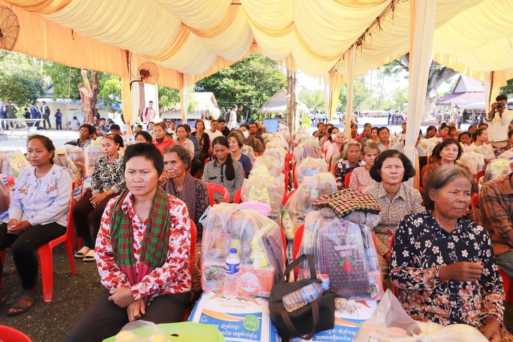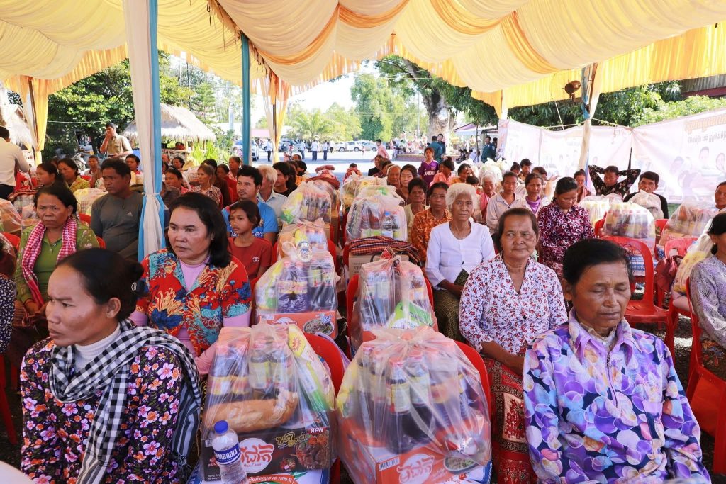 អំណោយក្នុងមួយគ្រួសារៗទទួលបានអង្ករ២៥គីឡូក្រាម សារ៉ុង ១ ក្រម៉ា១ ម៉្សៅសាប៊ូ១គីឡូក្រាម និងថវិកា៥០០០០រៀលព្រមទាំងគ្រឿងឧបភោគ បរិភោគមួយចំនួនទៀត៕