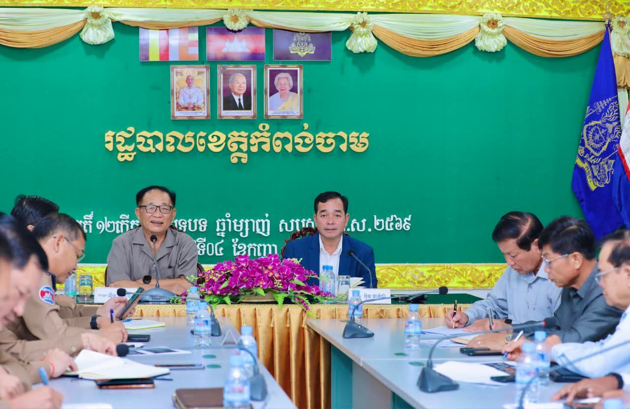កំពង់ចាម៖ នៅព្រឹកថ្ងៃទី៤ ខែកញ្ញា ឆ្នាំ២០២៥ នេះ រដ្ឋបាលខេត្តកំពង់ចាម ដឹកនាំដោយ ឯកឧត្តម អ៊ុន ចាន់ដា អភិបាលនៃគណៈអភិបាលខេត្ត បានសហការជាមួយ ក្រសួងសាធារណការ និងដឹកជញ្ជូន ដឹកនាំដោយ ឯកឧត្តម លឹម ស៊ីដេនីន រដ្ឋលេខា ធិការ និងជាប្រធានគម្រោងសាងសង់ផ្លូវជាតិលេខ៧ បានអញ្ជើញដឹកនាំកិច្ចប្រជុំពិនិត្យវឌ្ឍនភាព ការងារស្ថាបនាផ្លូវជាតិលេខ៧ និងរៀបចំប្រព័ន្ធសុវត្ថិភាព ជាពិសេស ការគ្រោងរៀបចំដាក់ដាំដើមឈើផ្កា ប្រភេទ “ជើងគោ” ចំនួន ១៥.០០០ដើម ស្ថិតនៅតាមបណ្តោយផ្លូវជាតិលេខ៧ ចាប់ពីរង្វង់មូល ស្គន់ ស្រុកជើងព្រៃ រហូតដល់ រង្វង់មូល ស្ពានគីហ្សូណា ក្រុងកំពង់ចាម ដែលដើមឈើផ្កាខាងលើ ជាអំណោយរបស់ ឯកឧត្តម សាយ សំអាល់ ឧបនាយករដ្ឋមន្ត្រី រដ្ឋមន្ត្រីក្រសួងរៀបចំដែននគររូបនីយកម្ម និងសំណង់ តាមរយៈការស្នើសុំពី ឯកឧត្តម អ៊ុន ចាន់ដា អភិបាលខេត្តកំពង់ចាម។