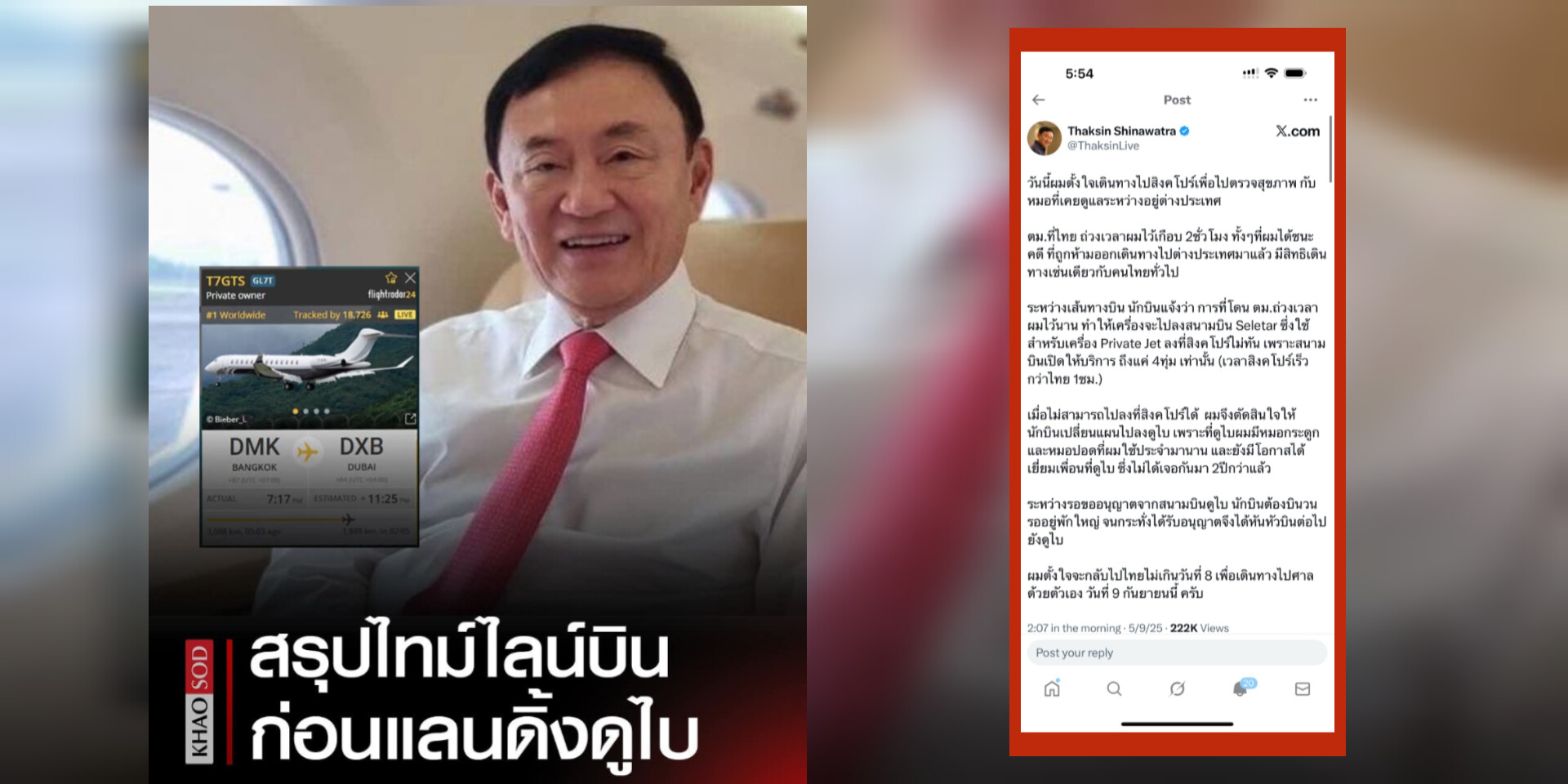 ក្រោយជួបបញ្ហាបែបនេះ លោកក៏សម្រេចចិត្តហោះទៅឌូបៃតែម្តង។ លោក ថាក់ស៊ីន បន្តអះអាងថា លោកនឹងវិលត្រឡប់មកថៃ ឱ្យបានមុនថ្ងៃទី៨ ខែកញ្ញា ដើម្បីចូលសវនាការថ្ងៃទី៩ ខែកញ្ញា ឆ្នាំ២០២៥៕