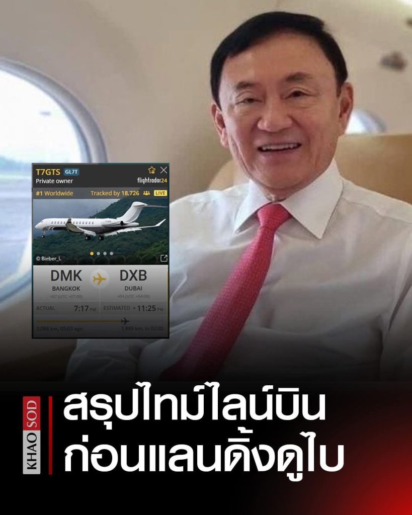 យោងតាមសារព័ត៌មាន Khasosod របស់ថៃចេញផ្សាយព្រឹកថ្ងៃនេះថា លោក ថាក់ស៊ីន ចុះចតនៅទីក្រុងឌូបៃ មិនមែនប្រទេសសិង្ហបុរីទេ។