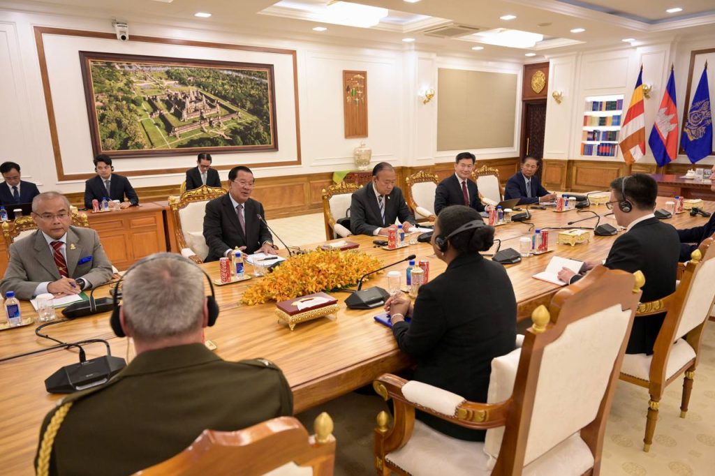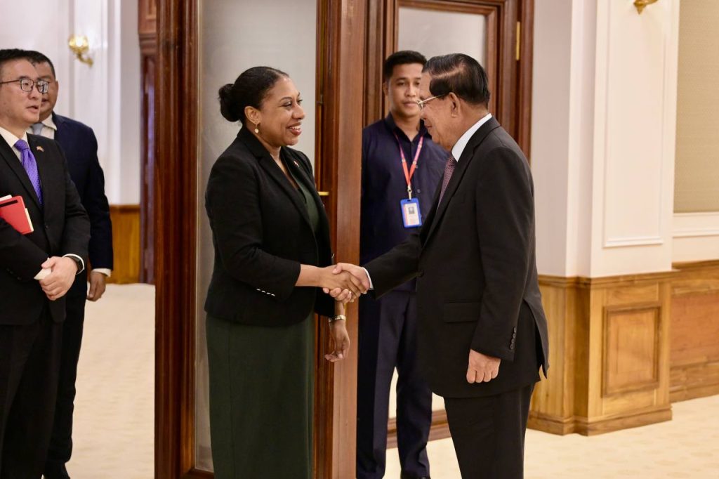 ភ្នំពេញ៖នៅព្រឹកថ្ងៃសុក្រ ទី៥ ខែកញ្ញា ឆ្នាំ២០២៥នេះ សម្ដេចតេជោ ហ៊ុន សែន ប្រមុខរដ្ឋស្ដីទីនៃព្រះរាជាណាចក្រកម្ពុជា បានអនុញ្ញាតឱ្យលោកស្រី Bridgette L.Walker ភារធារីស្ថានទូតអាម៉េរិក ប្រចាំកម្ពុជា ចូលជួបសម្តែងការគួរសម និងពិភាក្សាការងារ នៅវិមានព្រឹទ្ធសភា៕