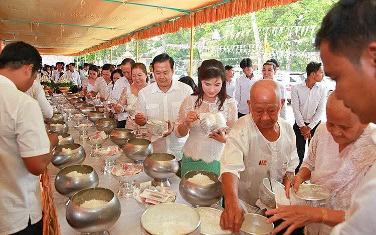 បុណ្យភ្ជុំបិណ្ឌ ត្រូវបានធ្វើឡើងតាមបែបព្រះ ពុទ្ធសាសនា។ ជារៀងរាល់ឆ្នាំនៅពេលដល់ ថ្ងៃខែដែលត្រូវប្រារព្ធពិធីបុណ្យភ្ជុំបិណ្ឌ គ្រប់ បងប្អូនកូនចៅ សាច់ញាតិសន្ដានទាំងអស់ ទោះនៅទីជិត ឬទីឆ្ងាយ តែងតែធ្វើដំណើរទៅជួបជុំគ្នា ជាពិសេសឪពុកម្ដាយ ដើម្បីរៀបចំម្ហូបអាហារ បាយសម្ល ចង្ហាន់យកទៅប្រគេនព្រះសង្ឃដែលគង់នៅវត្តអារាម។