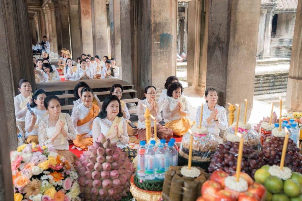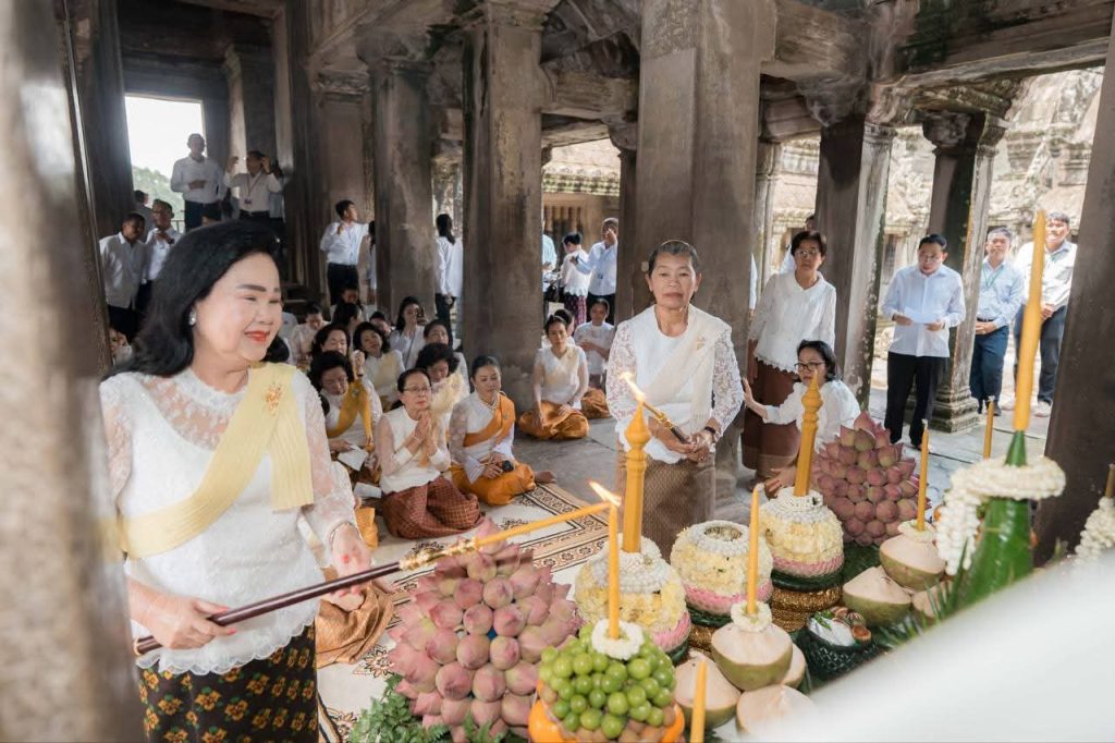 សម្តេចកិត្តិព្រឹទ្ធបណ្ឌិត ប៊ុន រ៉ានី ហ៊ុនសែន អមដំណើរដោយ សម្តេចកិត្តិសង្គហបណ្ឌិត ម៉ែន សំអន សមាជិកា ឧត្តមប្រឹក្សាផ្ទាល់ព្រះមហាក្សត្រ និងលោកជំទាវបណ្ឌិត ពេជ ចន្ទមុន្នី ហ៊ុន ម៉ាណែត អញ្ជើញជាអធិបតី «ពិធីបួងសួងចម្រើនសេចក្តីសុខ» ដែលត្រូវបានប្រារព្ធធ្វើនៅ (១)ទីសក្ការៈព្រះអង្គចេកព្រះអង្គចម (២)តំបន់អភិរក្សអង្គរ និងនៅ (៣)ប្រាសាទអង្គរតូច នាព្រឹកថ្ងៃទី១៥ ខែកញ្ញា ឆ្នាំ២០២៥។