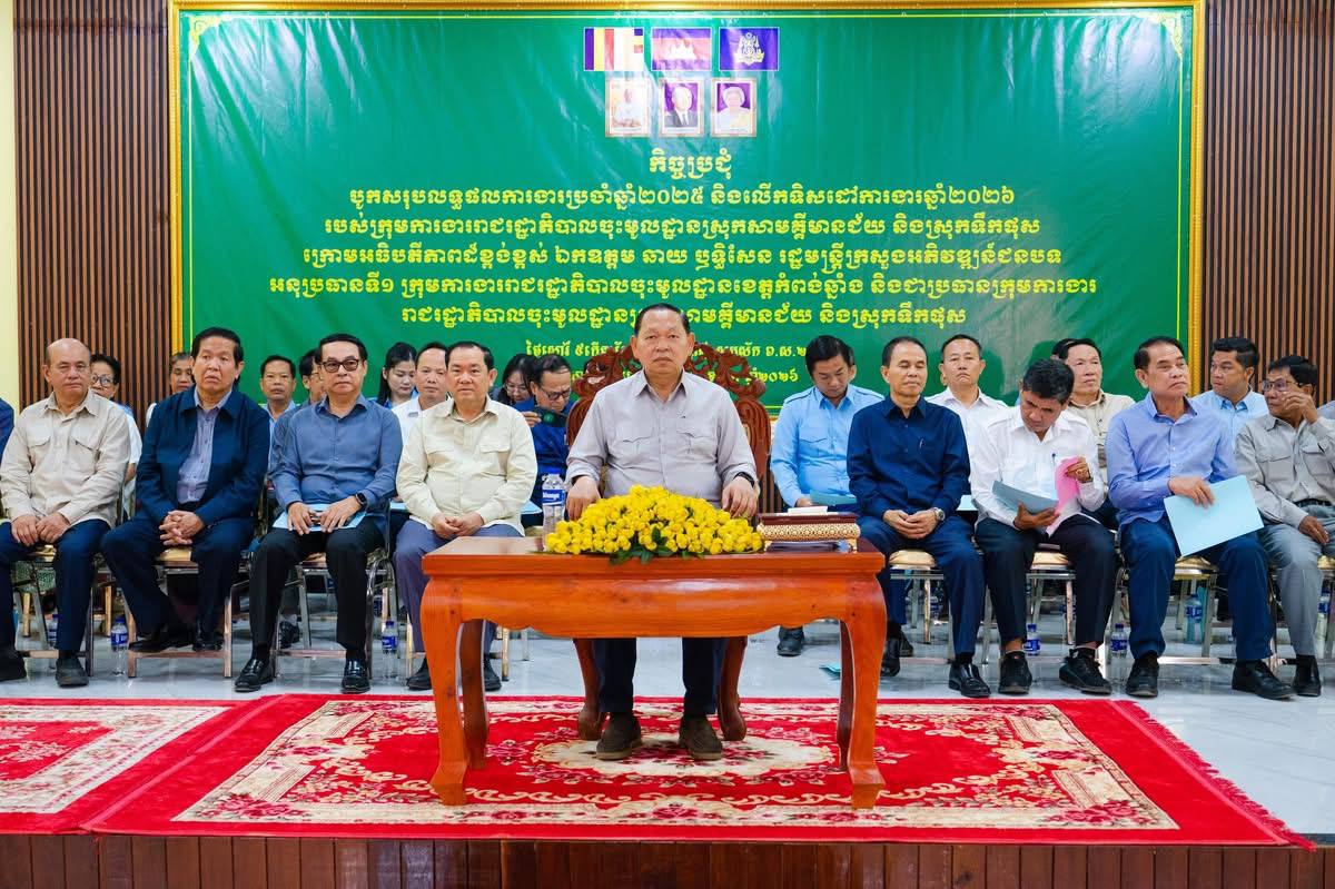 កំពង់ឆ្នាំង៖ ក្រុមការងាររាជរដ្ឋាភិបាលចុះមូលដ្ឋានស្រុកទឹកផុស និងស្រុកសាមគ្គីមានជ័យ ខេត្តកំពង់ឆ្នាំង បានរៀបចំកិច្ចប្រជុំបូកសរុបលទ្ធផលការងារឆ្នាំ២០២៥ និងលើកទិសដៅការងារឆ្នាំ២០២៦ កាលពីថ្ងៃទី២១ ខែកុម្ភៈ ឆ្នាំ២០២៦។