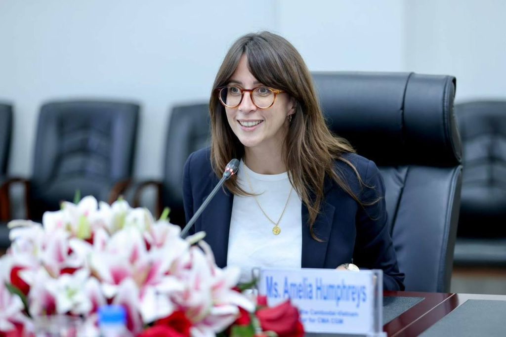 ភ្នំពេញ៖ កាលពីរសៀលថ្ងៃទី១៤ ខែសីហា ឆ្នាំ២០២៥នេះ លោក ប៉េង ពោធិ៍នា រដ្ឋមន្ត្រីក្រសួងសាធារណការ និងដឹកជញ្ជូន បានអនុញ្ញាតឱ្យលោកស្រី Amélie HUMPHREYS អ្នកគ្រប់គ្រងទូទៅក្រុមហ៊ុនដឹកជញ្ជូន CMA CGM Group ប្រចាំកម្ពុជា-វៀតណាម ចូលជួបសម្តែងការគួសម និងពិភាក្សាការងារ ដោយមានការចូលរួមពី ថ្នាក់ដឹកនាំក្រសួង និងមន្រ្តីពាក់ព័ន្ធ។