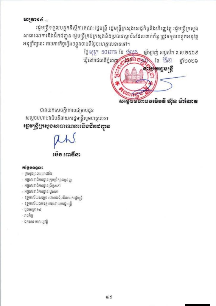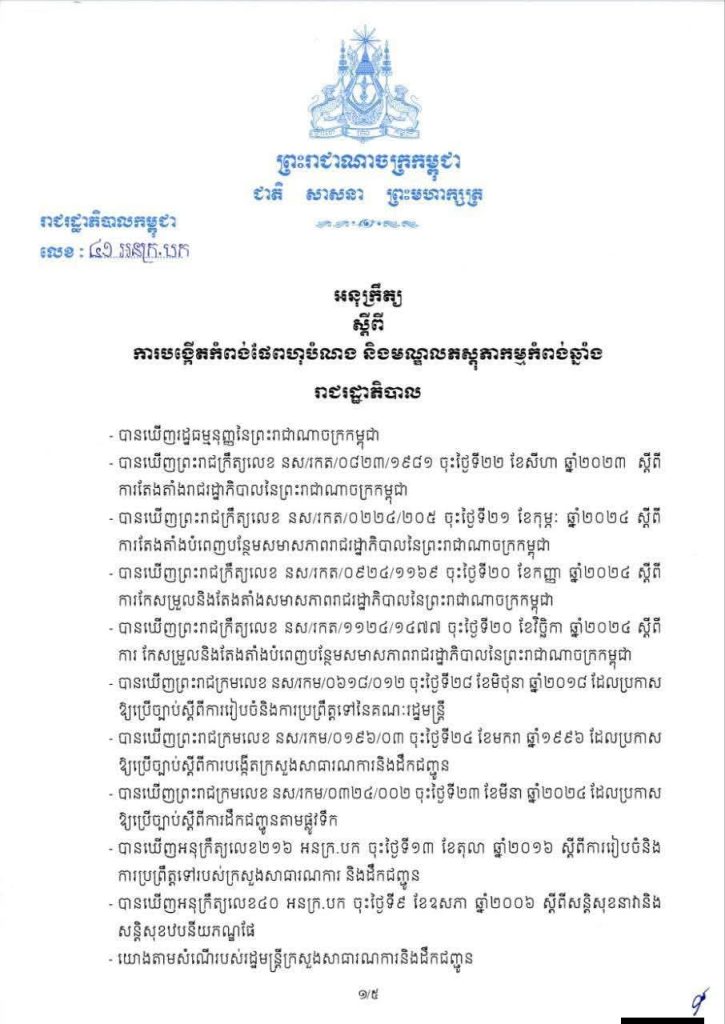 ភ្នំពេញ៖ សម្តេចបវរធិបតី ហ៊ុន ម៉ាណែត នាយករដ្ឋមន្ត្រីនៃកម្ពុជា បានចេញអនុក្រឹត្យសម្រេចបង្កើតកំពង់ផែពហុបំណង និងមណ្ឌលភស្តុភាកម្មកំពង់ឆ្នាំង នៅស្រុកកំពង់លែង។