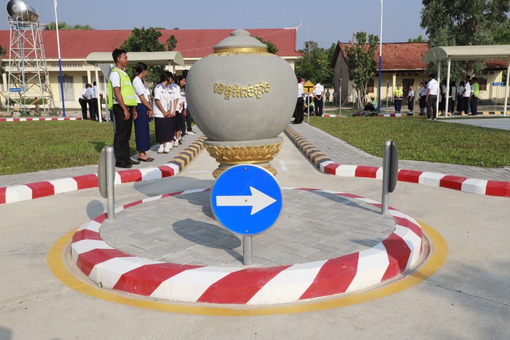 ឯកឧត្តម ប៉េង ពោធិ៍នា រដ្ឋមន្រ្តីក្រសួងសាធារណការនិងដឹកជញ្ជូន បានមានប្រសាសន៍ថា នេះគឺជាលើកដំបូងបំផុតនៅកម្ពុជាដែលបានបង្កើតនូវសួនសុវត្ថិភាពចរាចរណ៍ ដែលបានធ្វើដំបូងគេនៅលើទឹកដីនៃខេត្តកំពង់ឆ្នាំង ។ ការបង្កើតសួនសុវត្ថិភាពចរាចរណ៍គឺ បង្ហាញដល់សាធារណៈជនឱ្យចូលសិក្សាស្វែងយល់បន្ថែមលើអ្វីដែលបានរៀននៅសាលាបើកបរ ដើម្បីពង្រឹងការយល់ដឹងអំពីច្បាប់ ការគោរពសិទ្ធិអាទិភាព បច្ចេកទេស និងក្រមសីលធម៌នៃការបើកបរ។ សួនសុវត្ថិភាពចរាចរណ៍ជាសួនដែលបង្កើតនៅតាមសាលា ដោយមានការដាក់បញ្ចូល ហ្គារ៉ាស់សាំងសប្បនិម្មិត ផ្លូវ គន្លងចរាចរណ៍ ភ្លើងសញ្ញាចរាចរណ៍ ឬស្លាកសញ្ញាចរាចរណ៍ព្រមទាំងមានអ្វីៗផ្សេងទៀតដែលពាក់ព័ន្ធនឹងការធ្វើដំណើរ។ ការរៀបចំបង្កើតសួនសុវត្ថិភាពចរាចរណ៍ គឺដើម្បីពង្រឹងការយល់ដឹងអំពីច្បាប់ ការគោរពសិទ្ធិអាទិភាព បច្ចេកទេស និងក្រមសីលធម៌នៃការបើកបរ ដល់សិស្សានុសិស្ស និងសាធារណជនទូទៅ ក្នុងគោលបំណងធានាសុវត្ថិភាព សណ្ដាប់ធ្នាប់សាធារណៈ និងការពារអាយុជីវិតប្រជាពលរដ្ឋផងដែរ។