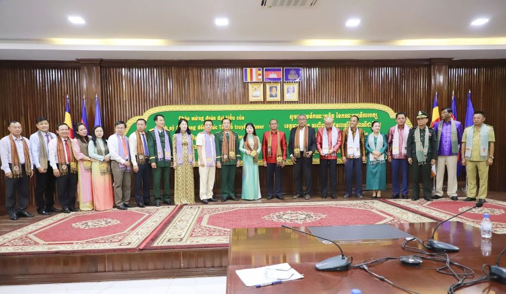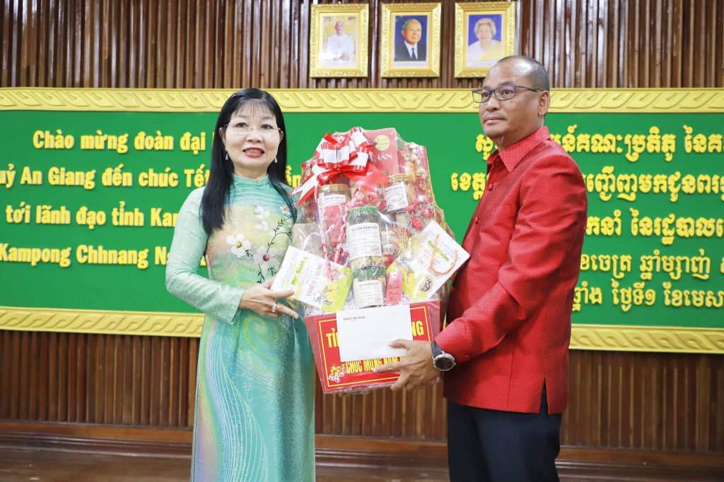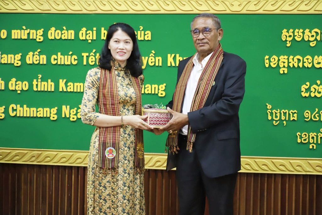 កំពង់ឆ្នាំង៖ គណៈប្រតិភូខេត្តអានយ៉ាង ប្រទេស វៀតណាម ដឹកនាំដោយលោកស្រី ជិន ធិថាញ់ ហឿង (Chin Thi Thanh Huong) ប្រធានគណៈកម្មាធិការរណសិរ្សមាតុភូមិវៀតណាម ខេត្ត អានយ៉ាង នៅព្រឹកថ្ងៃទី០១ ខែមេសា ឆ្នាំ២០២៦ បានអញ្ជើញជូនពរដល់ថ្នាក់ដឹកនាំខេត្ត កងកម្លាំងប្រដាប់អាវុធ មន្ត្រីរាជការ និងប្រជាពលរដ្ឋខេត្តកំពង់ឆ្នាំង ក្នុងឱកាសបុណ្យចូលឆ្នាំថ្មីប្រពៃណីជាតិខ្មែរ ឆ្នាំមមី អដ្ឋស័ក ព.ស.២៥៧០ ដែលជិតឈានចូលមកដល់នាពេលខាងមុខនេះ។