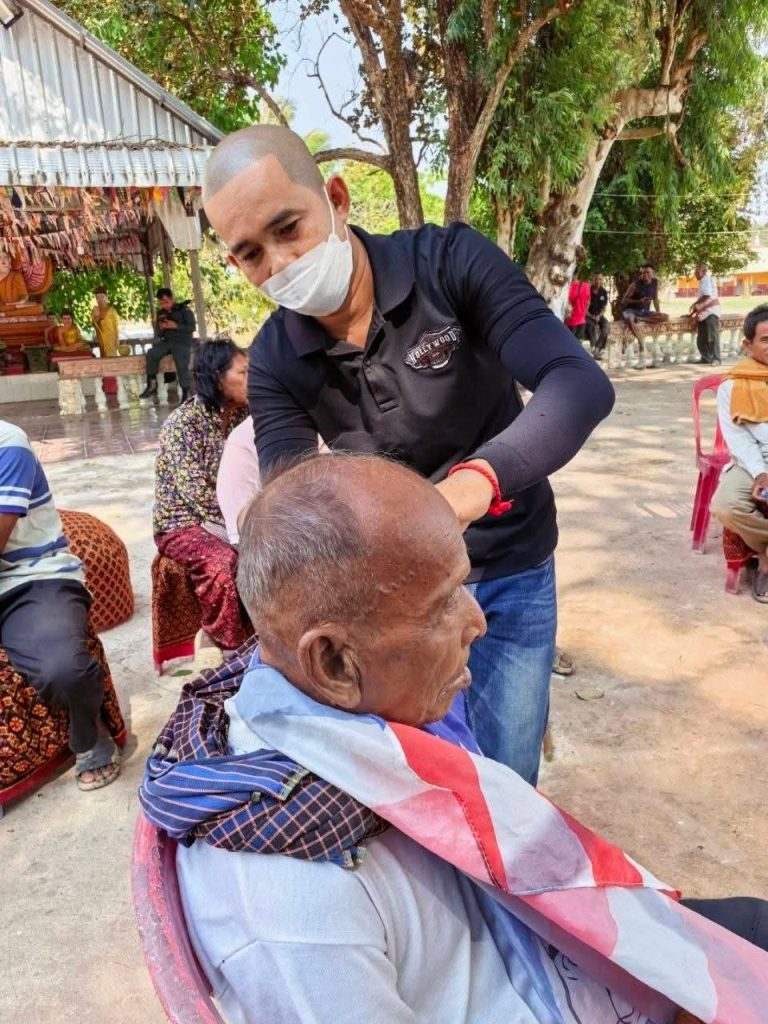 កំពង់ឆ្នាំង៖លោក សាន់ យូ អភិបាលរងខេត្តកំពង់ ឆ្នាំង និងជាប្រធានក្រុមការងារចុះមូលដ្ធាន ឃុំដារ បានដឹកនាំក្រុមយុវជនកាត់សក់ ក្រុម ហូលីវូដ ប្រចាំក្រុងកំពង់ឆ្នាំង ទៅកាត់សក់សម្អាតកាយា ដោយមិនគិតប្រាក់ជូនដល់ លោកយាយ លោកតា និងប្រជាពលរដ្ឋ នៅក្នុងភូមិប្រសាទ ឃុំដារ ស្រុកកំពង់លែង ខេត្តកំពង់ឆ្នាំង កាលពីថ្ងៃទី០៣ ខែមេសា ឆ្នាំ២០២៦ ។