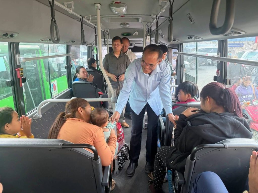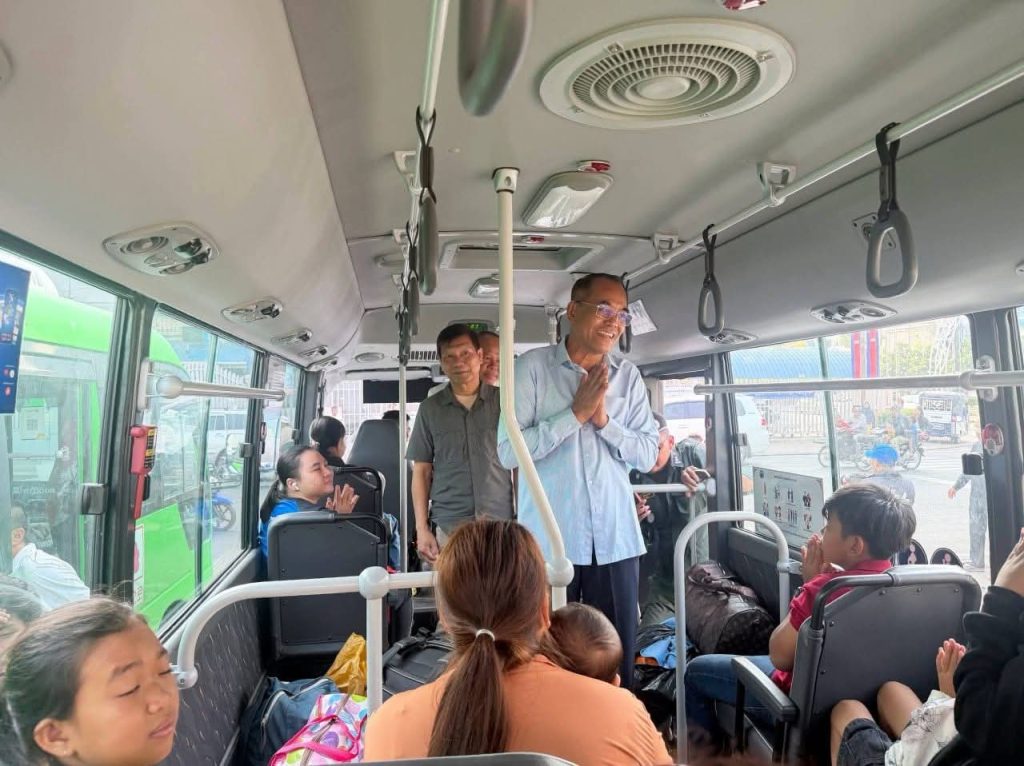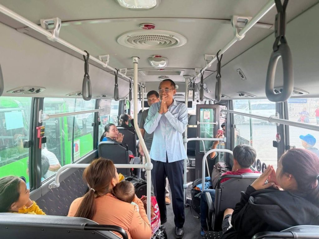 កំពង់ឆ្នាំង៖លោក យិន សាវ៉េន អភិបាលរងខេត្តកំពង់ឆ្នាំង និងលោក ឆាយ លាភា ប្រធានមន្ទីរ សាធារណការនិងដឹកជញ្ជូនខេត្តកំពង់ឆ្នាំង នៅព្រឹកថ្ងៃទី១៧ ខែមេសា ឆ្នាំ២០២៥ បានអញ្ជើញ ជួបសំណេះសំណាល និងជូនដំណើរ ប្រជាពល រដ្ឋ កម្មករ កម្មការិនី ដែលបានមកលេងស្រុកកំណើតក្នុងឱកាសបុណ្យចូលឆ្នាំថ្មីប្រពៃណីជាតិ រយៈពេល៣ថ្ងៃ ដោយបានចាប់ផ្តើមវិលត្រឡប់ទៅកន្លែងធ្វើការវិញ។