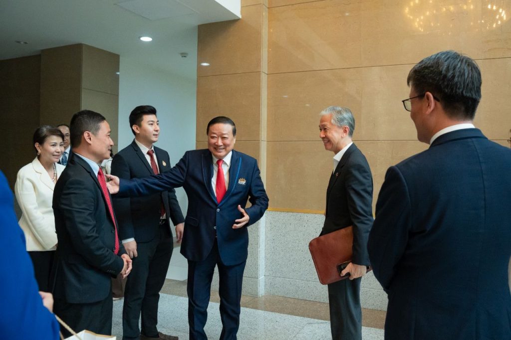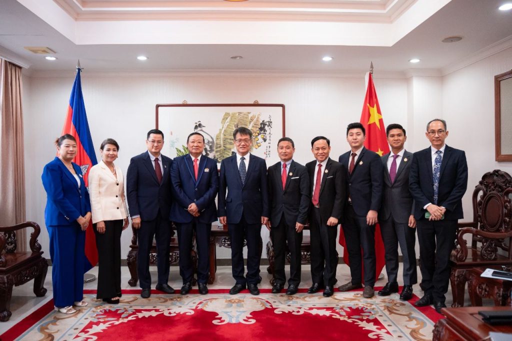 ភ្នំពេញ៖ នាថ្ងៃសុក្រ ៤រោច ខែស្រាពណ៍ ឆ្នាំម្សាញ់ សប្ដស័ក ព.ស. ២៥៦៩ ត្រូវនឹងថ្ងៃទី ១៣ ខែ សីហា ឆ្នាំ២០២៥ ឧកញ៉ា តែ តាំងប៉ ប្រធានសម័្ពន្ធសមាគមសហគ្រាសធុនតូច និងមធ្យមកម្ពុជា និងជាប្រធានក្រុមប្រឹក្សាភិបាលសមាគមមូលនិធិសម្ដេចតេជោ បានដឹកនាំសមាជិកក្រុមប្រឹក្សាភិបាលដើម្បីចូលជួបសម្ដែងការគួសមជាមួយ ឯកឧត្តម វ៉ាង វិនពីន ឯកអគ្គរដ្ឋទូតចិនប្រចាំកម្ពុជា និងជួបពិភាក្សាការងារជាមួយ ឯកឧត្តម Zhao Haiyan អគ្គទីប្រឹក្សានៃស្ថានទូតចិនប្រចាំកម្ពុជា។