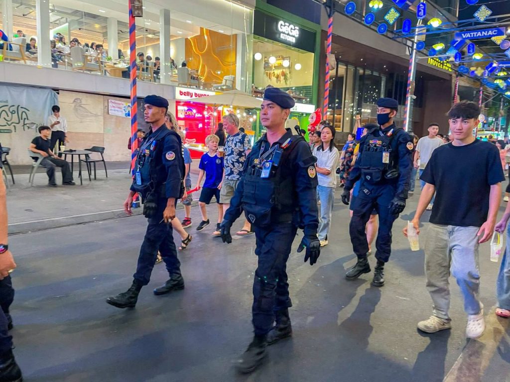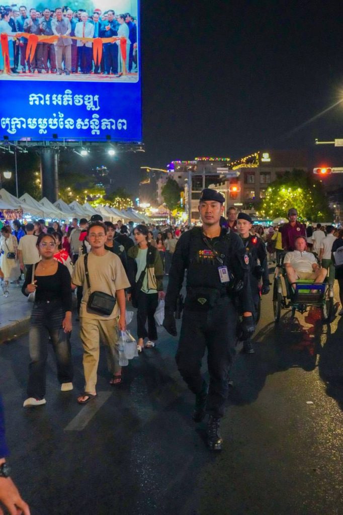 ភ្នំពេញ៖ ថ្ងៃទី១៦ ខែសីហា ឆ្នាំ២០២៥ កម្លាំងកងរាជអាវុធហត្ថរាជធានីភ្នំពេញ ចូលរួមល្បាត ការពារសន្តិសុខ សុវត្ថិភាព រក្សាសណ្ដាប់ធ្នាប់ និងសង្គ្រោះបន្ទាន់ ជូនបងប្អូនប្រជាពលរដ្ឋ ធ្វើដំណើរកំសាន្ត នៅតាមដងផ្លូវថ្មើរជើង (Walk Street) ។