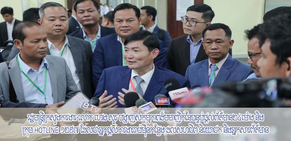 ភ្នំពេញ៖ បន្ទាប់ពីចប់កិច្ចប្រជុំក្រុមប្រឹក្សាជាតិប្រាក់ឈ្នួលអប្បបរមាអាណត្តិទី៤ (២០២៥-២០២៦) លោក ហេង សួរ រដ្ឋមន្ត្រីក្រសួងការងារ និងបណ្ដុះបណ្ដាលវិជ្ជាជីវៈ និងជាប្រធានក្រុមប្រឹក្សាជាតិប្រាក់ឈ្នួលអប្បបរមា នាល្ងាចថ្ងៃទី២០ ខែសីហា ឆ្នាំ២០២៥ បានអញ្ជើញតំណាងអង្គការវិជ្ជាជីវៈរបស់និយោជក តំណាងអង្គការវិជ្ជាជីវៈរបស់កម្មករនិយោជិត និងអ្នកសារព័ត៌មានទៅទស្សនាបន្ទប់ផ្តល់ព័ត៌មាន២៤ម៉ោង តាមរយៈលេខទូរសព្ទ Hotline 1297 ដែលបម្រើដល់ការស្វែងរកការងារធ្វើរបស់បងប្អូនប្រជាពលរដ្ឋ ជាពិសេសពលករខ្មែរទើបមកពីប្រទេសថៃ។