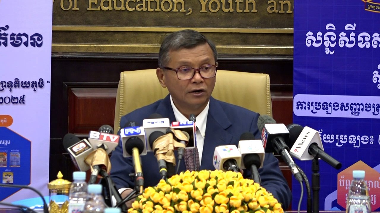 ក្នុងសន្និសីទសារព័ត៌មានស្តីពី «ដំណើរការរៀបចំការប្រឡងសញ្ញាបត្រមធ្យមសិក្សាទុតិយភូមិ» សម័យប្រឡងថ្ងៃទី២៨ ខែសីហា ឆ្នាំ២០២៥ នៅទីស្តីការក្រសួង នារសៀលថ្ងៃទី២២ ខែសីហា ឆ្នាំ២០២៥នេះ បណ្ឌិតសភាចារ្យ ហង់ជួន ណារ៉ុន ឧបនាយករដ្ឋមន្ត្រី រដ្ឋមន្ត្រីក្រសួងអប់រំ យុវជន និងកីឡា បានអំពាវនាវឱ្យបេក្ខជនប្រឡងសញ្ញាបត្រមធ្យមសិក្សាទុតិយភូមិ (បាក់ឌុប) ក្នុងឆ្នាំ២០២៥នេះទាំងអស់ គោរពបទបញ្ញត្តិនៃប្រឡង និងថែរក្សាសុខភាពឱ្យបានល្អ ដើម្បីជំរុញឱ្យដំណើរការនៃការប្រឡងមានភាពរលូន និងទទួលបានជោគជ័យទាំងអស់គ្នា។