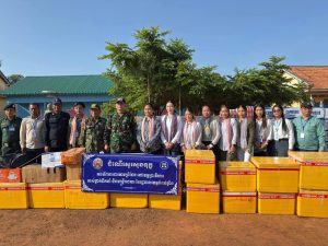 កំពង់ឆ្នាំង ÷ ឯកឧត្តម ស៊ុន សុវណ្ណារិទ្ធិ អភិបាលនៃគណៈអភិបាលខេត្តកំពង់ឆ្នាំង និងលោកជំទាវ និងឯកឧត្តម ស៊ីវ រុន ប្រធានក្រុមប្រឹក្សាខេត្តរួមនិងក្រុមការងារ បានចូលរួមសួរសុខទុក្ខ និងនាំយកគ្រឿងឧបភោគបរិភោគ សម្ភារ និងថវិកា ដែលជាអំណោយដ៏ថ្លៃថ្លារបស់ព្រះសង្ឃ ប្រជាពលរដ្ឋ មន្ត្រីរាជការ សប្បុរសជនទូទាំងខេត្តកំពង់ឆ្នាំង ប្រគល់ជូនវីរកងទ័ពនៃបញ្ជាការដ្ឋានអង្គរក្ស កងកម្លាំងនៃបញ្ជាការដ្ឋាននគរបាលជាតិប្រចាំទិសភូមិភាគទី៤ និងបងប្អូនជនភៀសសឹក ស្នាក់នៅវត្តពោធិ៍ប្រាំពាន់ ឃុំគូលែនត្បូង ស្រុកគូលែន ខេត្តព្រះវិហារ នាថ្ងៃទី២ ខែសីហា ឆ្នាំ២០២៥ ។