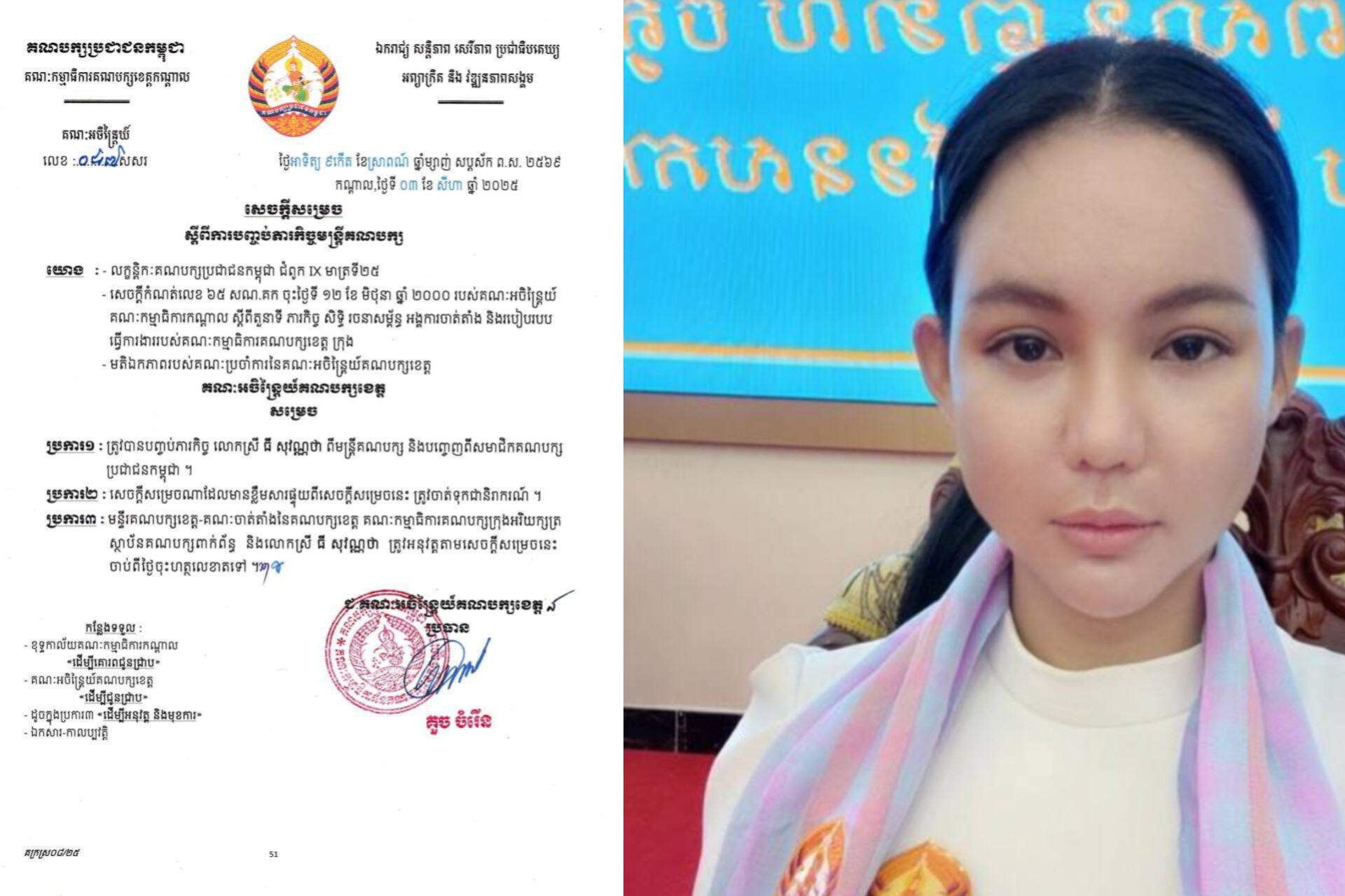 កណ្តាល៖ នៅថ្ងៃទី៣ ខែសីហា ឆ្នាំ ២០២៥ នេះ លោក គួច ចំរើន ប្រធានគណបក្សប្រជាជនកម្ពុជា ខេត្តកណ្តាល បានចេញសេចក្តីសម្រេចបញ្ចប់ភារកិច្ចលោកស្រី ធី សុវណ្ណថា ពីមន្រ្តីគណបក្ស និងបញ្ចេញពីសមាជិកគណបក្សប្រជាជនកម្ពុជា។