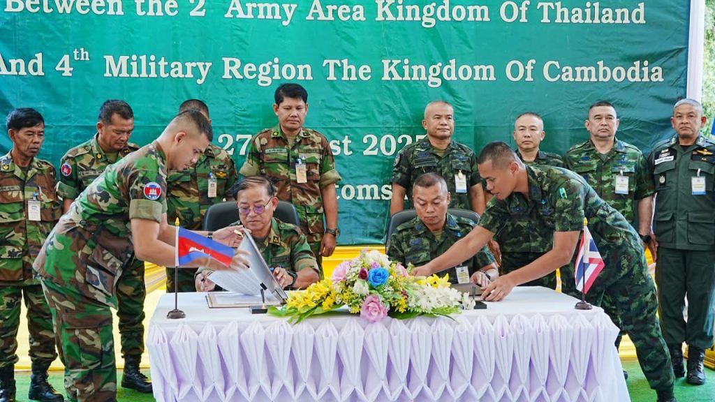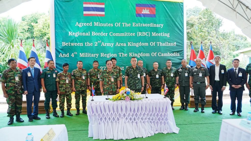 ភ្នំពេញ៖ នៅថ្ងៃទី២៧ ខែសីហា ឆ្នាំ២០២៥ ក្រសួងការពារជាតិ បានបង្ហាញអំពីលទ្ធផល នៃកិច្ចប្រជុំវិសាមញ្ញរបស់គណៈកម្មាធិការព្រំដែនថ្នាក់យោធភូមិភាគកម្ពុជា-ថៃ (RBC) រវាងយោធភូមិភាគទី៤របស់កម្ពុជា និងកងទ័ពភូមិភាគទី២របស់ថៃ ដោយភាគីថៃធ្វើជាម្ចាស់ផ្ទះ។