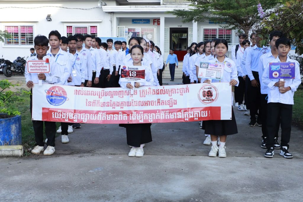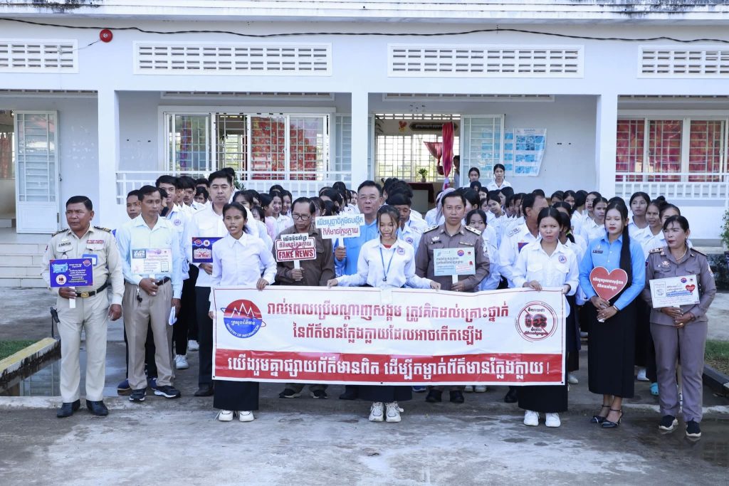 កំពង់ឆ្នាំង៖ ដើម្បីចូលរួមប្រយុទ្ធប្រឆាំងព័ត៌មានក្លែងក្លាយ មន្ទីរព័ត៌មានខេត្តកំពង់ឆ្នាំង នៅថ្ងៃទី ១២ ខែធ្នូ ឆ្នាំ២០២៥ បានធ្វើយុទ្ធនាការប្រឆាំងព័ត៌មានក្លែងក្លាយ ក្រោមពាក្យស្លោក «និយាយថាទេចំពោះព័ត៌មានក្លែងក្លាយ» ដោយរៀបចំធ្វើនៅវិទ្យាល័យ តេជោហ៊ុនសែនទឹកហូត ស្ថិតនៅស្រុករលាប្អៀរ ខេត្តកំពង់ឆ្នាំង ។