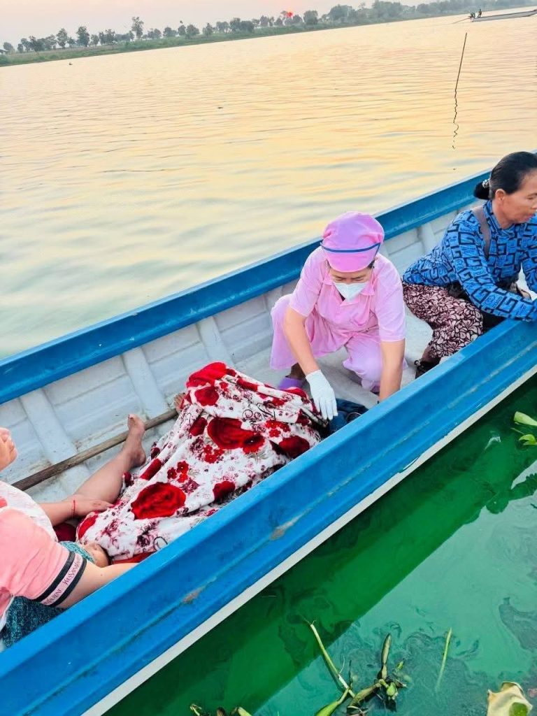 កំពង់ឆ្នាំង៖ ក្រុមគ្រូពេទ្យផ្នែកសម្ភព និងរោគស្ត្រី នៃមន្ទីរពេទ្យបង្អែកខេត្តកំពង់ឆ្នាំង ដឹកនាំដោយអ្នកគ្រូ ប៉ាល់ ដារិន ប្រធានផ្នែក បានចុះជួយ សង្គ្រោះស្ត្រីម្នាក់ដែលកំពុងសម្រាលកូននៅលើទូក ក្នុងស្ថានភាពប្រកបដោយគ្រោះថ្នាក់ និងប្រញាប់ប្រញាល់បំផុត។